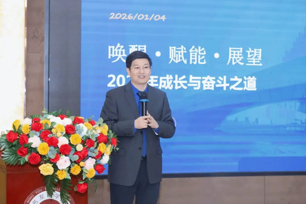 总裁赵维利作主题演讲。他首先指出:未来的市场将永久属于长期主义者,唯有坚守价值、持续深耕,方能赢得持久胜利。2026年,名泰将全面升级“人、货、场”三大系统:以科技为引擎,为产品赋能,推动健康解决方案智能化、个性化;以系统为武器,为团队赋能,提升整体作战成效;以管理为基石,为增长赋能,保障方案落地。他号召全体干部持续精进,共同推动这场“进化”。