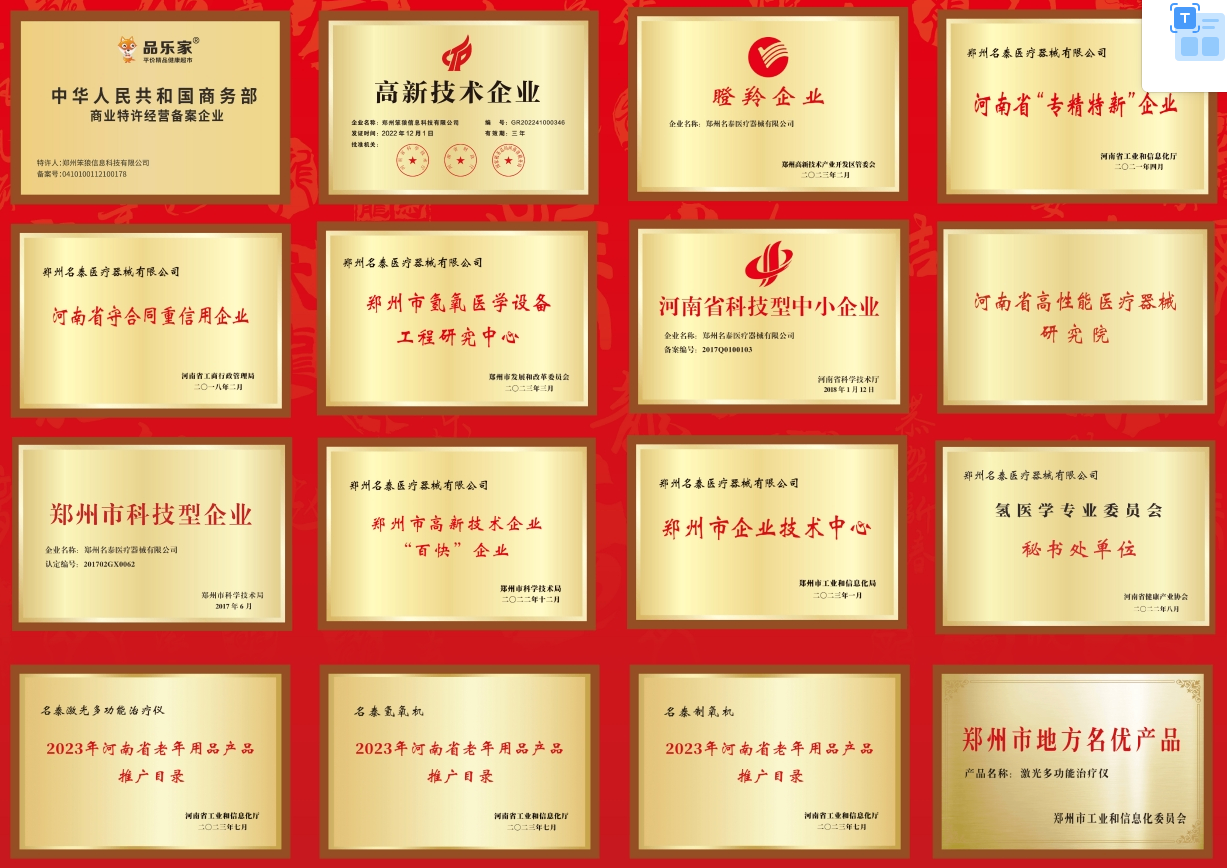 在氢氧技术的创新与应用方面,名泰医疗持续投入、成效显著。近年来,公司与郑州大学第五附属医院共同发起成立“河南省健康产业协会氢医学专业委员会”,并担任秘书处单位,积极推动氢医学的科研与临床发展。此外,名泰还助力成立了郑州市氢氧医学设备工程研究中心,并入选“科创中原”氢氧医学设备产学研协作创新基地,彰显了其在行业内的积极作为。