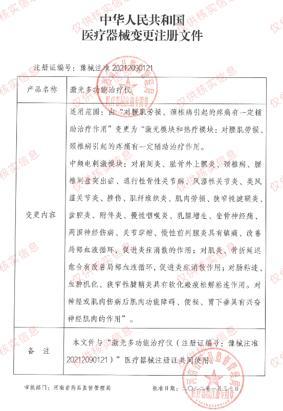 消费者只需登录国家药品监督管理局官网,输入产品名称或注册证编号,即可查询名泰激光多功能治疗仪的注册信息。